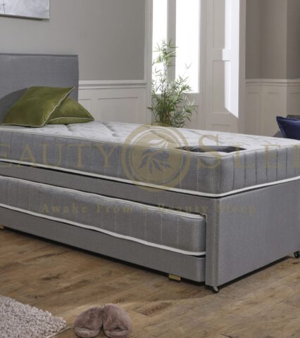 The bed comes with a 13.5-gauge spring in a quality stitch bond fabric, with a 6 gauge rod edge wire to ensure the mattress has edge support. Matramatic quilted design on a medium loft.